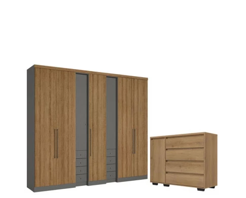 Guarda Roupa Casal Absolut Plus 7 Portas Grafite Almendra e Cômoda com Porta Aurora Capuccino Acetinado - THB