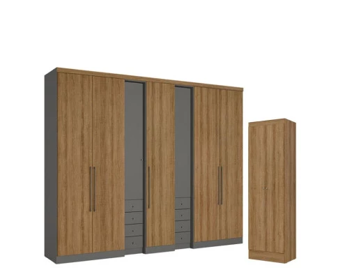 Guarda Roupa Casal Absolut Plus 7 Portas Grafite Almendra e Multiuso Space Almendra - THB
