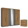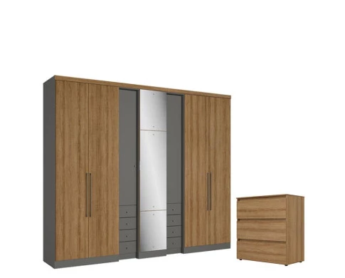 Guarda Roupa Casal Absolut Plus Glass 7 Portas Grafite Almendra e Cômoda Gaveteiro Condessa Capuccino Acetinado - THB