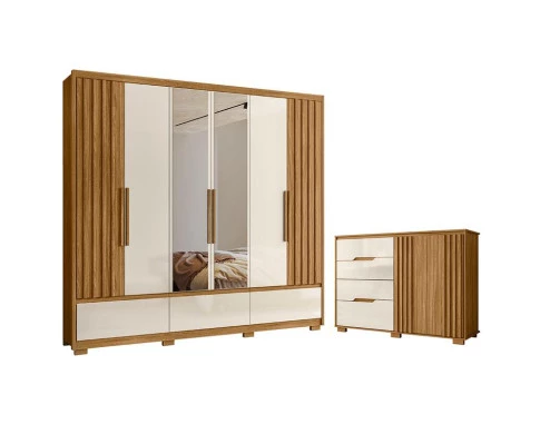 Guarda Roupa Casal Amazonas e Cômoda Texas Freijó Off White com Espelho - Moval