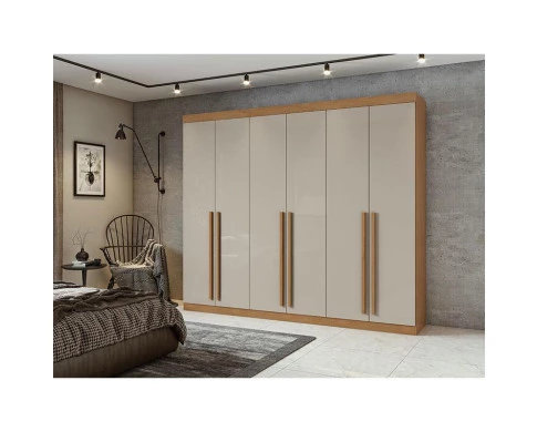 Guarda Roupa Casal Ambiente Bertha 6 Portas Amêndoa Clean Off White - Lopas