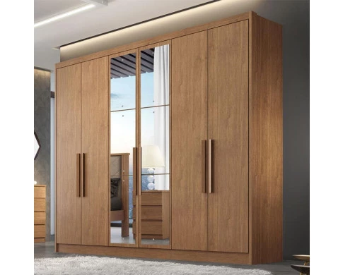 Guarda Roupa Casal Ambiente Linea 6 Portas 4 Gavetas Cumaru 23 com Espelho – Novo Horizonte