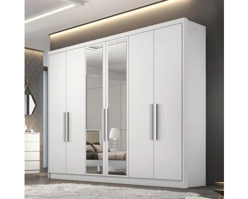 Guarda Roupa Casal Ambiente Linea 6 Portas 4 Gavetas Neve com Espelho – Novo Horizonte