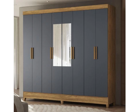 Guarda Roupa Casal Ambiente Marajó 8 Portas Freijó Cinza com Espelho – Moval