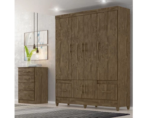 Guarda Roupa Casal MS912 Ambiente e Cômoda MS913 Castanho Wood – Moval