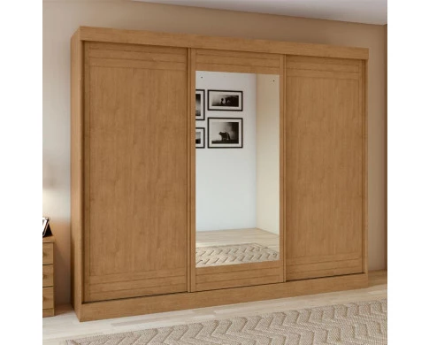 Guarda Roupa Casal Ambiente Nice 3 Portas 2 Gavetas Amêndoa Clean Off White Flex com Espelho – Lopas