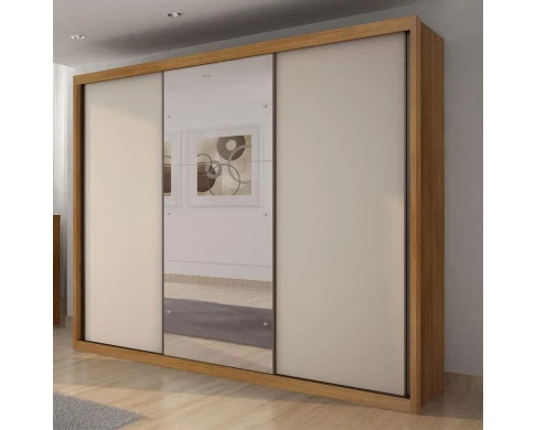 Guarda Roupa Casal Ambiente Palazzo 3 Portas 6 Gavetas Cumaru 25 Fendi com Espelho – Novo Horizonte