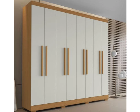 Guarda Roupa Casal Ambiente Porto 8 portas 4 Gavetas Freijó Baunilha - Aramóveis