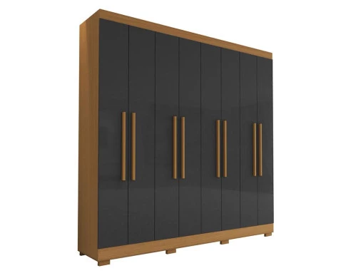 Guarda Roupa Casal Ambiente Porto 8 portas 4 Gavetas Freijó Grafite - Aramóveis