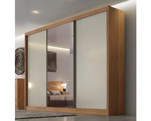 Guarda Roupa Casal Ambiente Sonetto 3 Portas 4 Gavetas Cumaru 25 Fendi com Espelho – Novo Horizonte