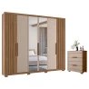Guarda Roupa Casal Araguaia e Cômoda Dhara Carvalho Fendi com Espelho - Moval
