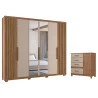 Guarda Roupa Casal Araguaia e Cômoda Vênus Carvalho Fendi com Espelho e Pés - Moval