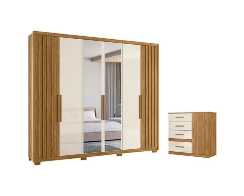 Guarda Roupa Casal Araguaia 6 Portas Freijó Off White com Espelho – Moval