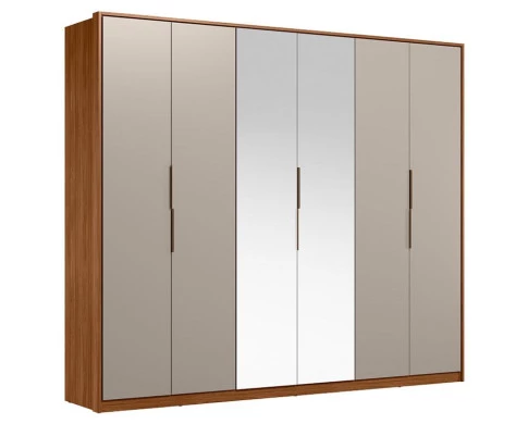 Guarda Roupa Casal Atrice 6 Portas Nogueira Nude Prime TX com Espelho Demóbile – Demartêz