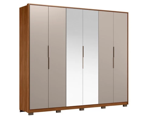 Guarda Roupa Casal Atrice 6 Portas Nogueira Nude Prime TX com Espelho e Pés Demóbile – Demartêz