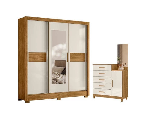 Guarda Roupa Casal Bahamas e Cômoda Lisboa Freijó Off White– Moval