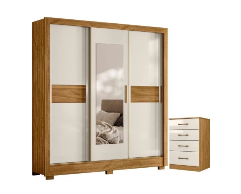 Guarda Roupa Casal Bahamas e Cômoda MS913 Freijó Off White– Moval