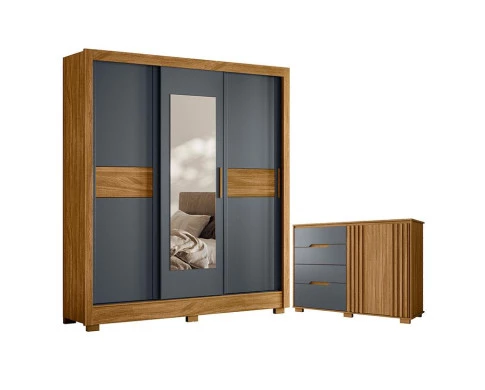 Guarda Roupa Casal Bahamas e Cômoda Texas Freijó Cinza– Moval