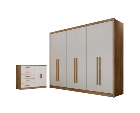 Guarda Roupa Casal Bandeira e Cômoda Seul Cumaru 25 Fendi - Novo Horizonte