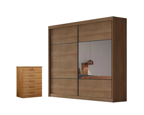 Guarda Roupa Casal Belmonte e Gaveteiro Suiça com Chave Cumaru 23 - Novo Horizonte