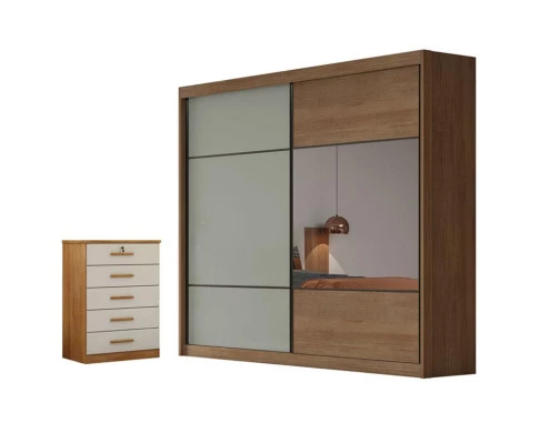 Guarda Roupa Casal Belmonte e Gaveteiro Suiça com Chave Cumaru 25 Fendi - Novo Horizonte