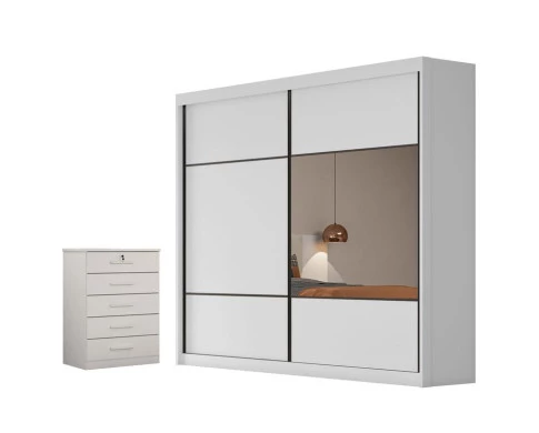 Está procurando móveis para montar seu quarto? Apresentamos para você este belo conjunto composto pelo guarda roupa da linha Belmonte e a cômoda gaveteiro da linha Suiça. O guarda roupa com design moderno apresentando 2 portas de correr e 4 gavetas equipadas com corrediças telescópicas entrega um amplo espaço interno. A cômoda conta com 5 gavetas também com corrediças telescópicas e uma porta ganhando um espaço extra. Fabricados pela Novo Horizonte, combinam resistência e sofisticação, sendo perfeito para organizar e otimizar o espaço no quarto do casal. Confira e aproveite!
