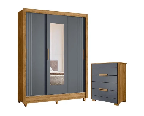 Guarda Roupa Casal Bolívia e Cômoda Dhara Freijó Cinza – Moval