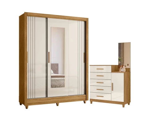 Guarda Roupa Casal Bolívia e Cômoda Lisboa Freijó Off White – Moval