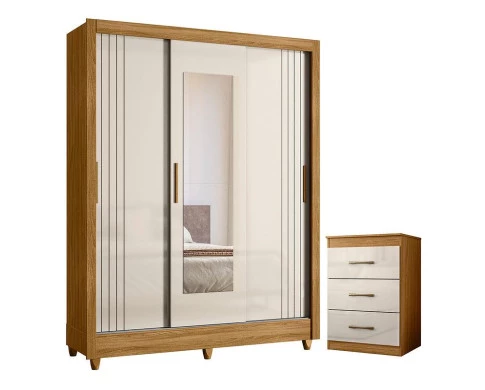Guarda Roupa Casal Bolívia e Cômoda MS913 Freijó Off White – Moval