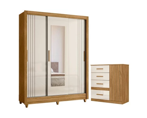 Guarda Roupa Casal Bolívia e Cômoda Vênus Freijó Off White – Moval