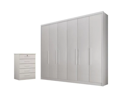Guarda Roupa Casal Bolonha e Gaveteiro Suiça Neve - Novo Horizonte