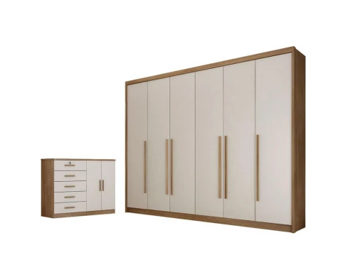 Guarda Roupa Casal Bragança e Cômoda Seul Cumaru 25 Fendi - Novo Horizonte