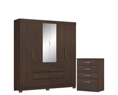Guarda Roupa Casal Cádis com Cômoda Astral Café Touch - Demóbile