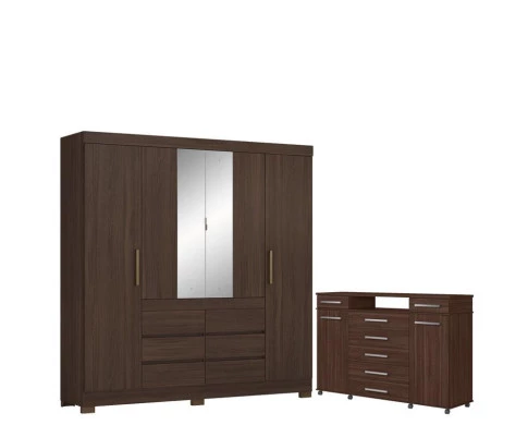 Guarda Roupa Casal Cádis com Cômoda London Café - Demóbile