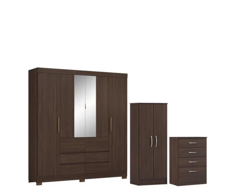 Guarda Roupa Casal Cádis com Multiuso Viena com Cômoda Astral Café Touch - Demóbile