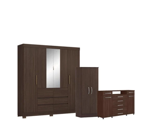 Guarda Roupa Casal Cádis com Multiuso Viena com Cômoda London Café - Demóbile