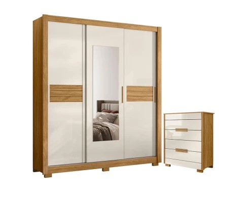 Organize seu quarto com elegância e o melhor custo benefício do mercado. Apresentamos o Guarda Roupa Casal Canadá e Cômoda Dhara fabricados pela Moval. Guarda Roupa com 03 portas deslizantes e 03 gavetas com corrediças telescópicas, espelhos inclusos, puxadores em MDF, cabideiro e calceiros em alumínio para melhor organização interna, sistema anti-empeno metálico, espaço ideal para roupas longas e pés em PVC. A cômoda possui 04 gavetas com corrediças telescópicas, moldura lateral de 25mm e tampo de 15mm, puxadores em MDF e pés em PVC. Fabricado com materiais de alta qualidade que garante resistência e durabilidade ao produto. Confira mais detalhes e aproveite!
