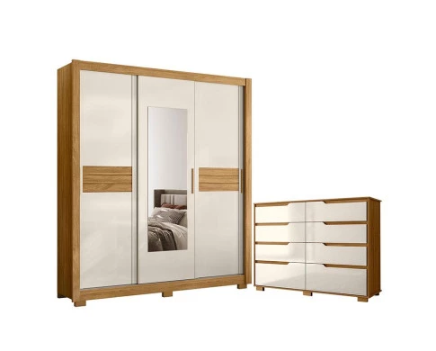 Guarda Roupa Casal Canadá e Cômoda Georgia Freijó Off White – Moval