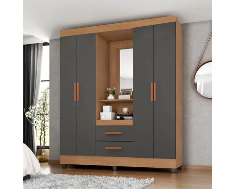 Guarda Roupa Casal Capela Ambiente Lite Nature Cinza – Móveis Leão