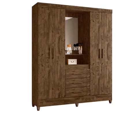 Guarda Roupa Casal Capelinha Capri 4 Portas Castanho Wood com Espelho - Moval