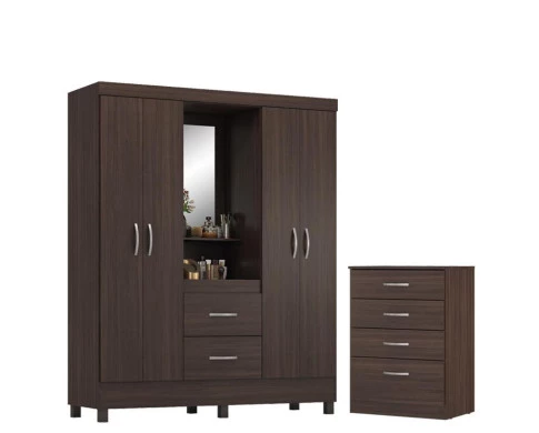 Guarda Roupa Solteiro Capelinha Lord com Cômoda Astral Café Touch -Demóbile