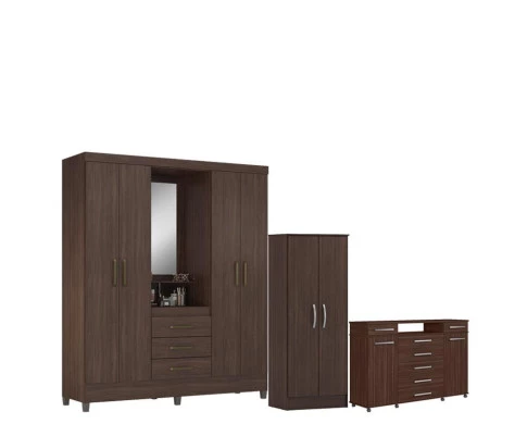 Guarda Roupa Casal Capelinha Pérsia com Multiuso Viena com Comôda London Café - Demóbile