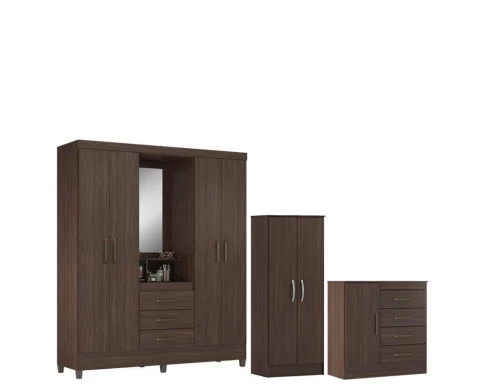 Guarda Roupa Casal Capelinha Lord com Multiuso Viena com Comôda Montividéu Café - Demóbile
