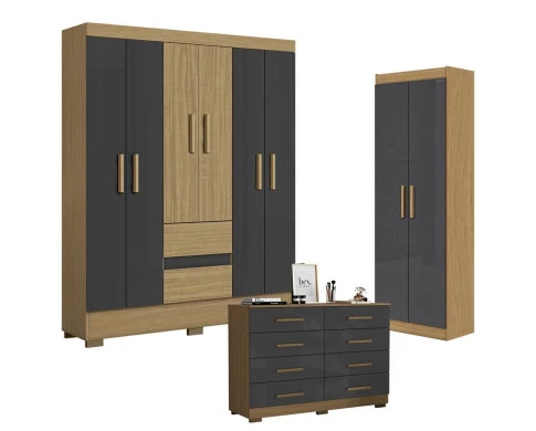 Buscando conjunto de guarda roupas, armário multiuso e cômoda ideal para deixar o quarto mais moderno e prático? Com design simples e atemporal, apresentamos o Guarda Roupa Casal Coimbra, o Armário Multiuso 2000191 e Cômoda 2014148 Atacama Grafite desenvolvidos pela Aramóveis, contam com amplo espaço interno para manter a organização das roupas, sapatos e outros pertences, confira e aproveite!