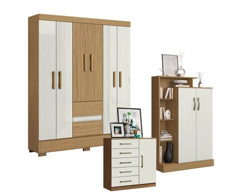 Buscando conjunto de guarda roupas com cômoda e armário multiuso ideal para deixar o quarto mais moderno e prático? Com design simples e atemporal, apresentamos o Guarda Roupa Casal Coimbra 2005138 com Cômoda Sapateira Milão 2014145 e o Armário Multiuso Florença 2000199 Atacama Off White desenvolvidos pela Aramóveis, contam com amplo espaço interno para manter a organização das roupas, sapatos e outros pertences, confira e aproveite!