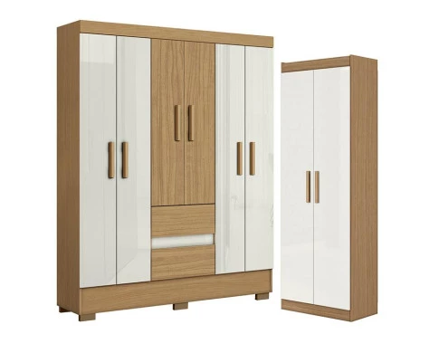 Buscando conjunto de guarda roupas e armário multiuso ideal para deixar o quarto mais moderno e prático? Com design simples e atemporal, apresentamos o Guarda Roupa Casal Coimbra e o Armário Multiuso 2000191 desenvolvidos pela Aramóveis, contam com amplo espaço interno para manter a organização das roupas, sapatos e outros pertences, confira e aproveite!