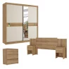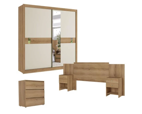 Cabeceira Casal com Mesas de Cabeceira Formosa Capuccino Acetinado - THB