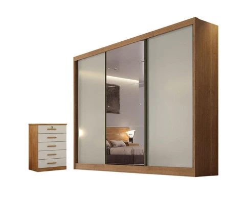 Guarda Roupa Casal Duna e Gaveteiro Suiça Cumaru 25 Fendi - Novo Horizonte