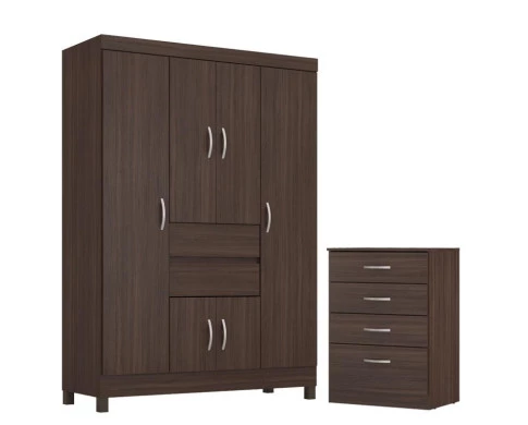 Guarda Roupa Casal Ecom 2 com Comôda Astral Café - Demóbile