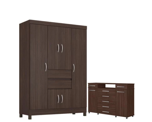 Guarda Roupa Casal Ecom 2 com Cômoda London Café - Demóbile